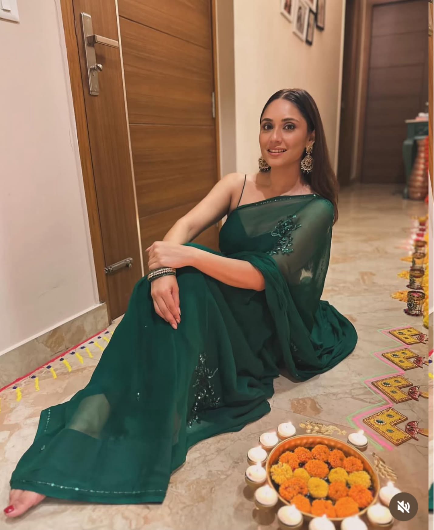 Embrald green pure chiffon handcrafted sequins saree with blouse