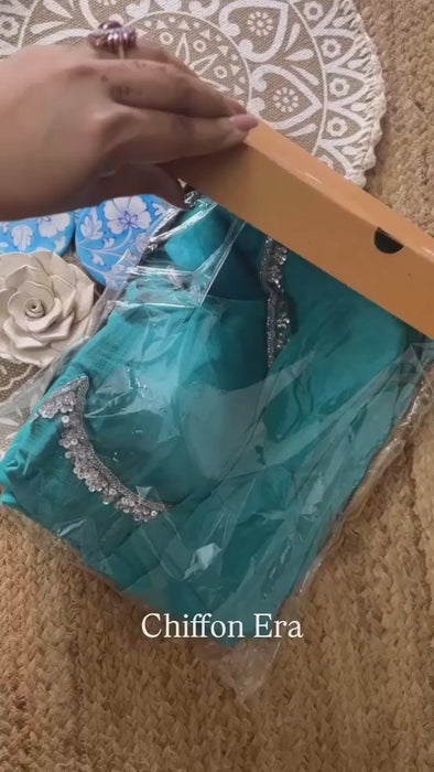 Firozi Blue Chiffon Scallop Saree with Handcrafted Designer Blouse – Chiffon Era